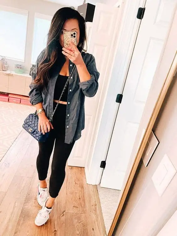 1. Opt for lightweight tops: Pair your leggings with breezy layers like a loose tank and a sheer kimono or a cropped tee and a lightweight button-down shirt. These pieces add a stylish touch without trapping heat.
